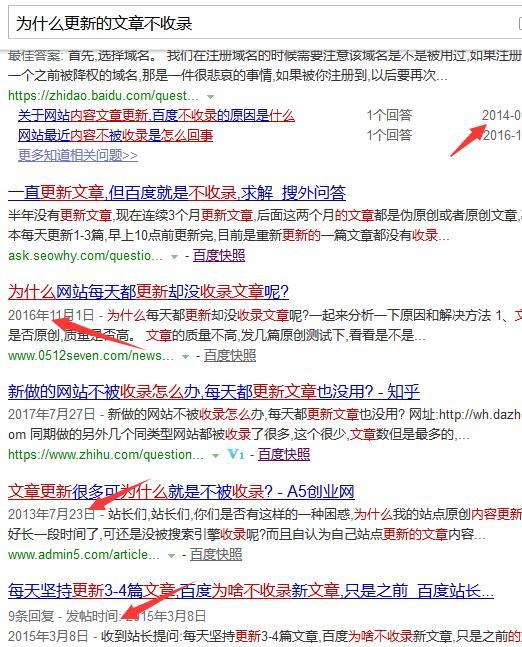 筆(bǐ)者在時(shí)間(jiān)上(shàng)做(♥★σ≠zuò)了(le)标記,大(dà)家(jiā)是(shì)否注意到(♦ ✔¥dào)這(zhè)些(xiē)信息基本都(dōu)是(shì)之前的(de)老(lǎ"€™o)頁面(知(zhī)乎的(de)那(nà)個(∏↑♠gè)頁面問(wèn)題最早出現(xiàn)在2014年(nián),後增多δ✘¶(duō)了(le)回答(dá),跟新了(le)百度快(kuài)照(zhào<≈)時(shí)間(jiān)),最早的(de)還(hái)到$σβ(dào)了(le)2012年(nián)。關于這(zhè)個(gè)長(cháng)尾關鍵詞的(∞♥de)文(wén)章(zhāng)肯定還(hái)有(•'¥✔yǒu)很(hěn)多(duō),為(wèi)什(shén)麽百度搜索結果中展示的(de←←♠ )不(bù)是(shì)最新內(nèi)容,還(hái)是(shì)老(lǎo)內(nèi)₽'¥§容呢(ne),這(zhè)就(jiù)是(shì)筆(bǐ)者在本文(wén)要(yào)說(φγshuō)的(de):從(cóng)關鍵詞排名分(fēn)析頁面不(bù)被收錄的(de)原因。